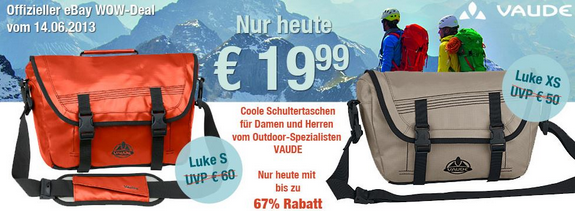 Ein Angebot, welches garantiert schnell ausverkauft sein wird. Bei eBay findet ihr heute Unisex-Umhängetaschen von Vaude. Um genau zu sein, handelt es sich um die beiden Modelle „Luke S“ und „Luke XS“. Bei Amazon bekommen die Taschen 4 von 5 Sterne, bei 8 Bewertungen. Ich denke vor allem für Outdoor-Unternehmer oder sogar für die Uni machen sich die Taschen besonders gut. Der Preis ist auf jeden Fall alles andere als schlecht. ![]()