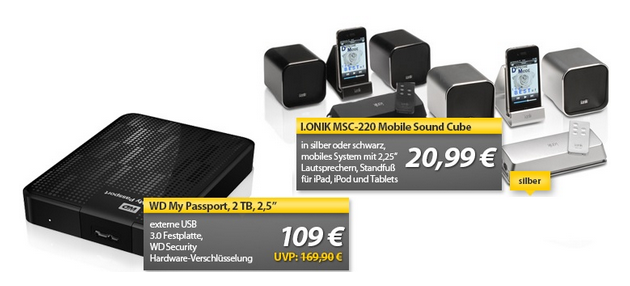 - OHA Tagesangebote: Western Digital „My Passport“ externe USB 3.0 Festplatte & I.ONIK MSC-220 Sound Würfel