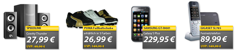 MeinPaket: Wochenend-Deals (Samsung Galaxy S Plus, Puma Fußballschuhe, Speedlink Gravity Thunder B-Ware)